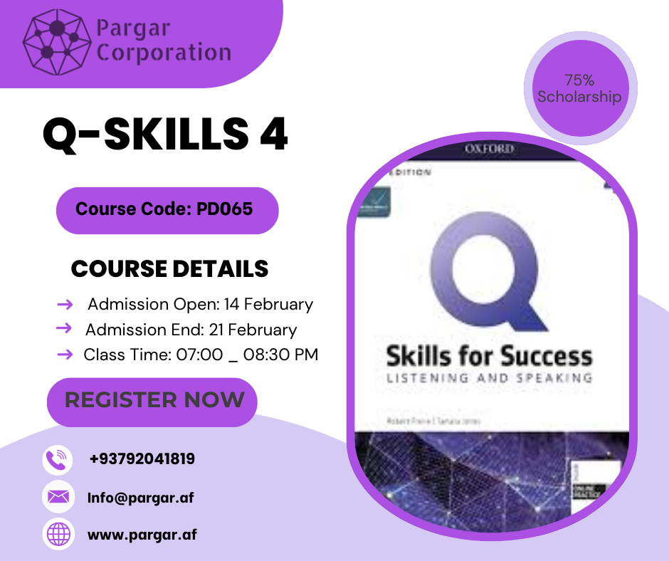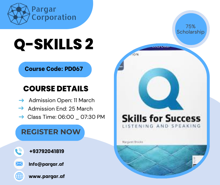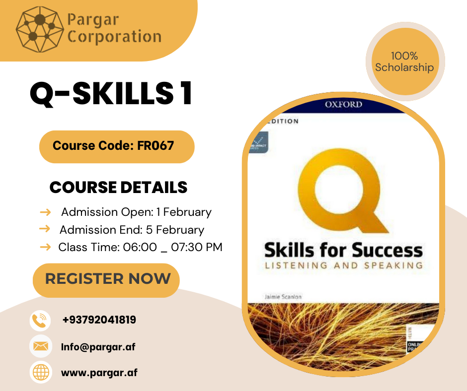 Course Details Time: 06:00- 07:30 PM Course Code: PD067 Schedule: Saturday – Wednesday Class Fee: 75% Scholarship | 550 AFs Instructor: Mahita Farkhari Course Timeline Admission Open: March 11th Admission End: March 25th Course Overview This course is designed for learners who have a foundational understanding of English and are ready to further enhance their […]