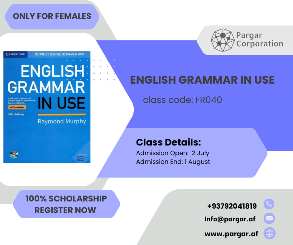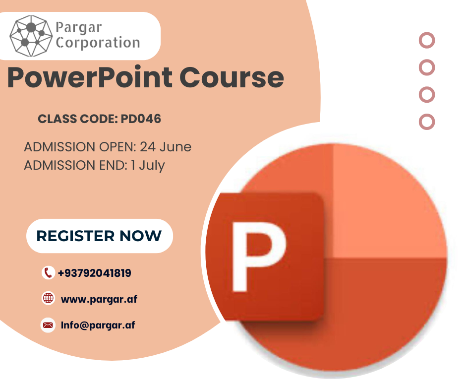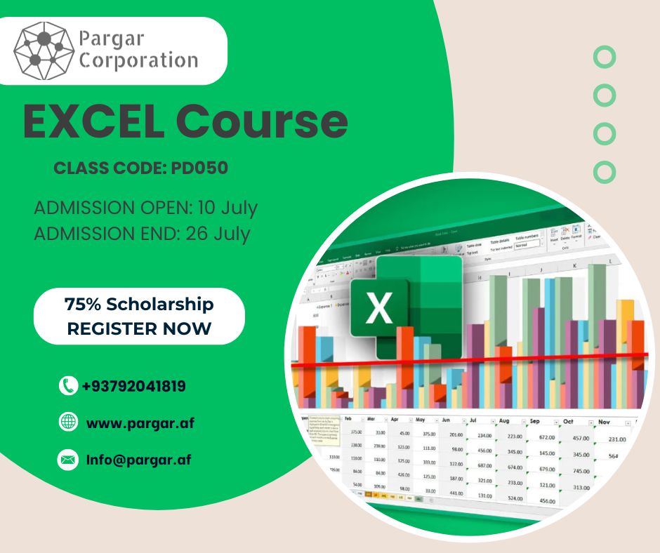 Course Details Time: 05:00 – 06:00 PM Course Code: PD050 Schedule: Saturday – Wednesday Class Fee: 75% Scholarship | 550 AFs. Course Timeline Admission Open: July 10th Admission End: July 26th Course Overview This training course will help you enhance your skills in Microsoft Excel. In this class, you will become familiar with both […]